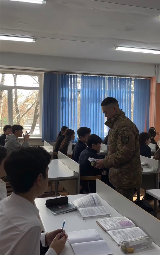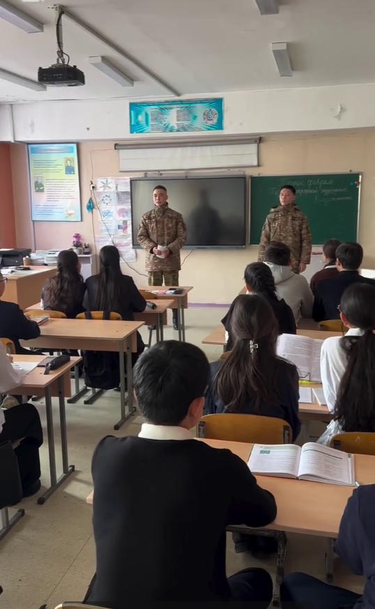 03 ақпан 2026 0 1 2 3 4 5 Әскери колледж өкілдерімен кәсіби бағдар беру кездесуі. Профориентационная встреча с представителями военного колледжа. 2026 жылғы 03 ақпан күні Армия генералы Сағадат Қожахметұлы Нұрмағамбетов атындағы әскери колледж өкілдері №142 жалпы білім беретін мектепке арнайы келіп, 8–9 сынып оқушыларына кәсіби бағдар беру жұмыстарын жүргізді.Кездесу барысында оқушыларға әскери білім беру жүйесі, оқу орнына қабылдау талаптары, оқу процесінің ерекшеліктері мен болашақтағы әскери мамандықтар туралы жан-жақты ақпарат берілді.Іс-шараның мақсаты – оқушылардың мамандық таңдауда дұрыс бағыт алуына көмектесу және әскери салаға қызығушылық танытатын жастарға қолдау көрсету.03 февраля 2026 года представители Военный колледж имени генерала армии Сагадата Кожахметовича Нурмагамбетова посетили среднюю школу №142 и провели профориентационную работу среди учащихся 8–9 классов.В ходе встречи школьникам была представлена подробная информация о системе военного образования, условиях поступления, особенностях обучения и перспективах получения военных специальностей.Основная цель мероприятия – помочь учащимся в осознанном выборе будущей профессии и поддержать интерес к военной службе. Осы беттің QR-коды:QR-код этой страницы: