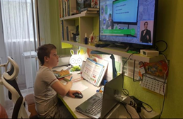 Ученик 4 «З» класса Колесников Фёдор смотрит ТВ уроки.