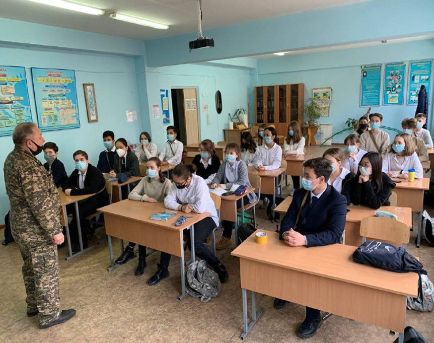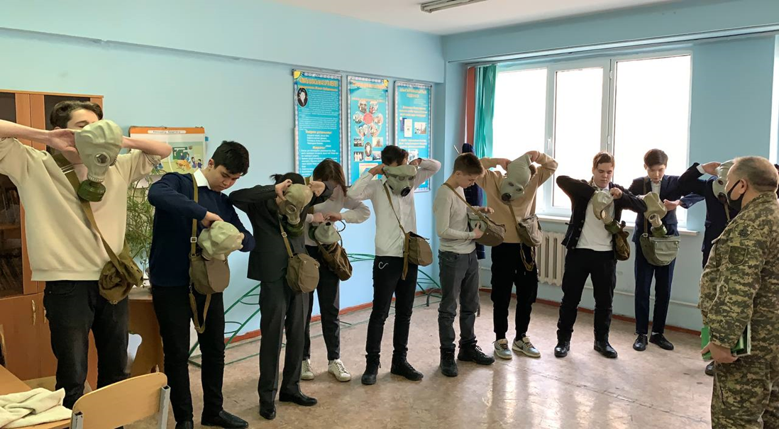 Азаматтық қорғаныс / төтенше жағдайлар бойынша оқушылармен тәжірибелік сабақ. Практическое занятие с учащимися по ГО/ЧС