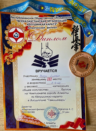 05 мамыр 2022 0 1 2 3 4 5 Мектебіміздің мақтанышы. Алматы қаласы бойынша Кекушинкай каратэден чемпионатқа қатысып, 3-ші орын иегері Мәди Сұлтан 3 "Г" сынып оқушысы иеленді. Құттықтаймыз!!! Осы беттің QR-коды:QR-код этой страницы: