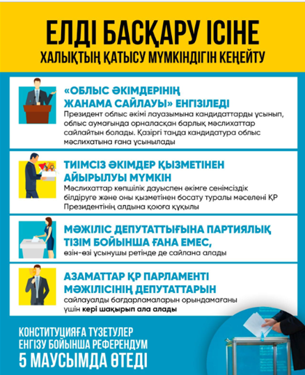 Президентіміз Қасым-Жомарт Кемелұлы Тоқаев конституциялық өзгерістер бойынша жалпыұлттық референдум өтетін күнді жариялады. Референдум 5 маусымға белгіленді.