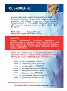 23 шілде 2022 0 1 2 3 4 5 Хабарландыру! Объявление! Алматы қаласы Түрксіб ауданы "№142 жалпы білім беретін мектеп" КММ «Мектепке жол» Республикалық акциясы басталды.📌Акцияның ұраны: Мектепке жол-Шекарасыз жақсылық. Осы беттің QR-коды:QR-код этой страницы: