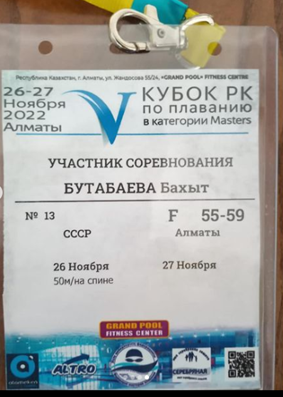 30 қараша 2022 0 1 2 3 4 5 Қазақстан Республикасының кубогі үшін суда жүзуден Қазақстан Республикасының кубогі үшін суда жүзуден Халықаралық жарыс өтті, осы жарысқа мектебіміздің ұлағатты ұстазы Бутабаева Б.Т. қатысып 1 орын иеленді. Осы беттің QR-коды:QR-код этой страницы: