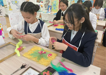 11 сәуірде Көркем еңбек пәнінің мұғалімдері Калиясова А.С. және Ардабаева С.Н. дымқыл және құрғақ киіз басу бойынша шеберлік сабағын өткізді.