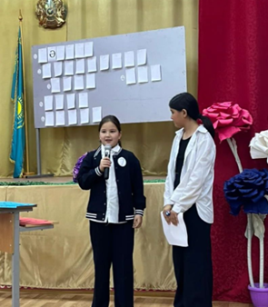 Бүгінгі " Тілдер мерекесінің аясында мектебіміздің ұлағатты ұстазы педагог-шебер Р.И. Избасова және де мықты маман иесі Ж.А. Куттыбекова "Үш тіл білу заман талабы" атты іс-шара ұйымдастырды. «Ғажайып алаң» интеллектуалдық ойын сабағы. (Игра «Поле чудес»)
