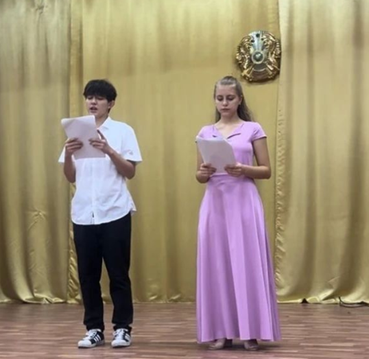 Бүгін орыс тілі мен әдебиеті пәнінің мұғалімі и. т. Дуганова 1 "З", 6"Д" "9 Г, Д, Е", 10 "Д,"11 "Г" оқушыларымен еңбек ардагерлерінің, мектеп мұғалімдері С. М. Қуатова, Прокопенко З. Ф., И. Е. Ачурованың қатысуымен талғампаз жас күніне арналған сынып сағатын өткізді.