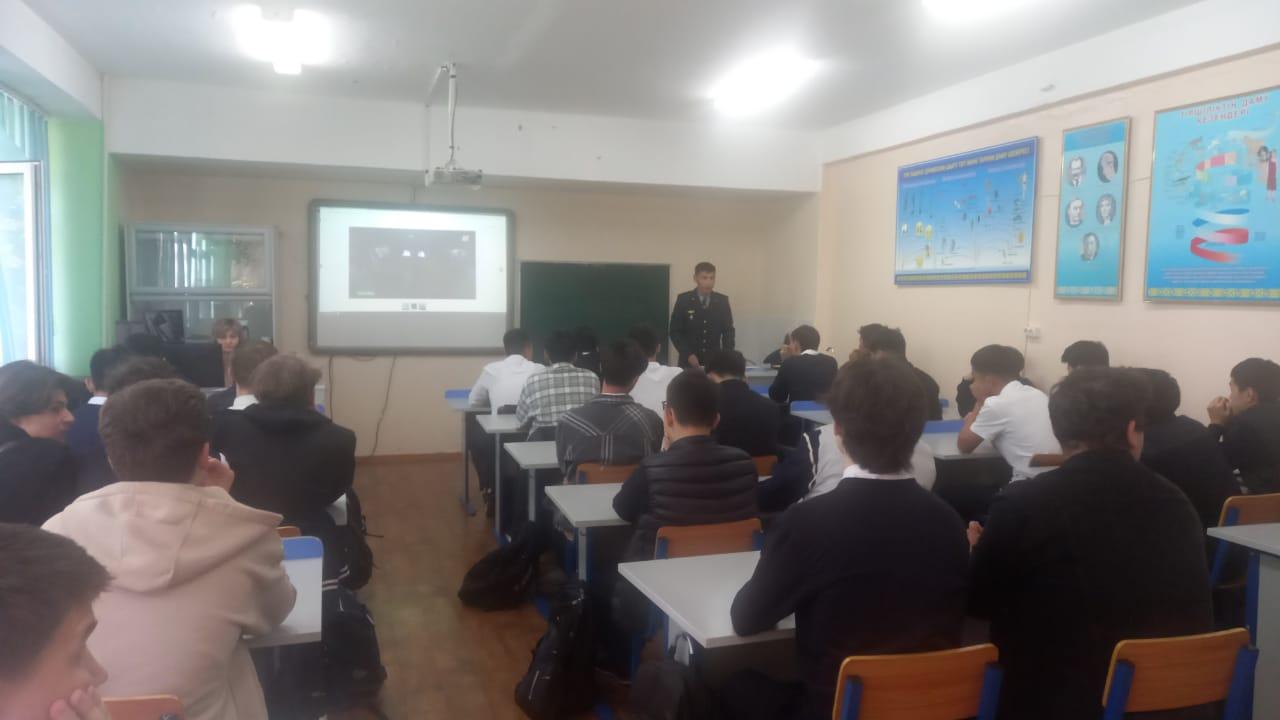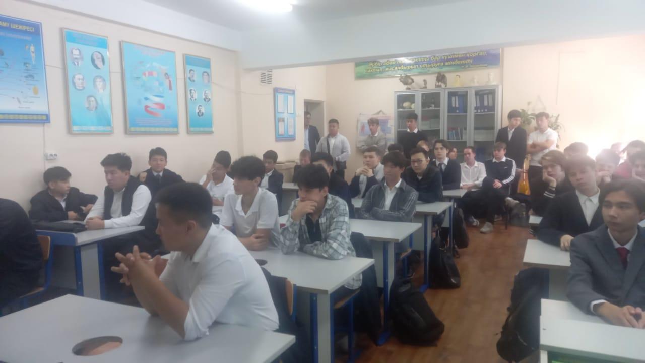 11 октября 2023 года военнослужащим Пограничной службы КНБ Республики Казахстан в лице майора полиции Оразанова Куаныша Талгатовича проведена профориентационная работа с учащимися 11 классов.