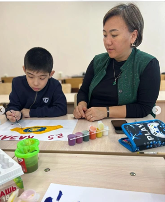 20.10.2023 жыл №142 ЖББМ Республика күнін мерекелеу аясында ерекше білім беру қажеттіліктері бар балалар үшін " Күн сәулелі Қазақстан!" атты суреттер мен қолөнер байқауы өткізілді. Осы байқауға 2-9 сынып оқушыларымен қатар педагог-ассистенттер бірге жұмыс жасалды.Өз суреттерінде туған жерге, Отанға деген сүйіспеншіліктерін көрсетті.
