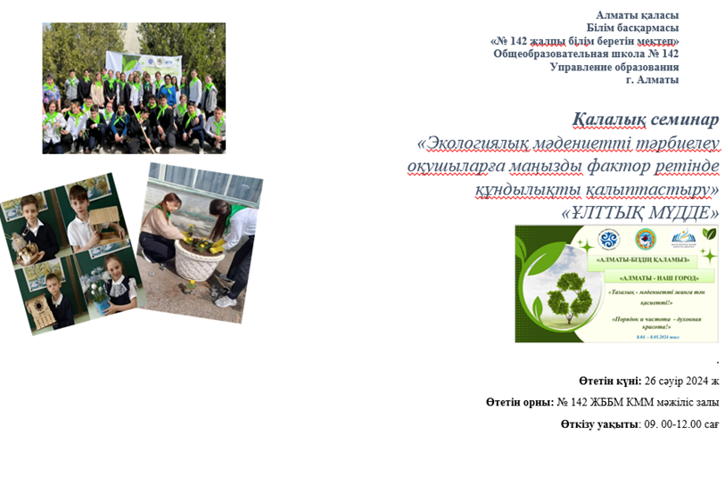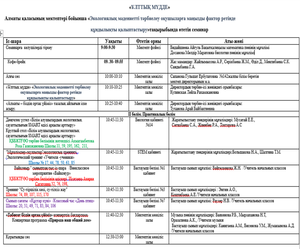 26 сәуір 2024 0 1 2 3 4 5 Городской семинар по воспитательной работе 26 апреля 2024 года в школе был организован городской семинар «Воспитание экологической культуры у учащихся как важный фактор формирования ценности «Национальный интерес». Осы беттің QR-коды:QR-код этой страницы: