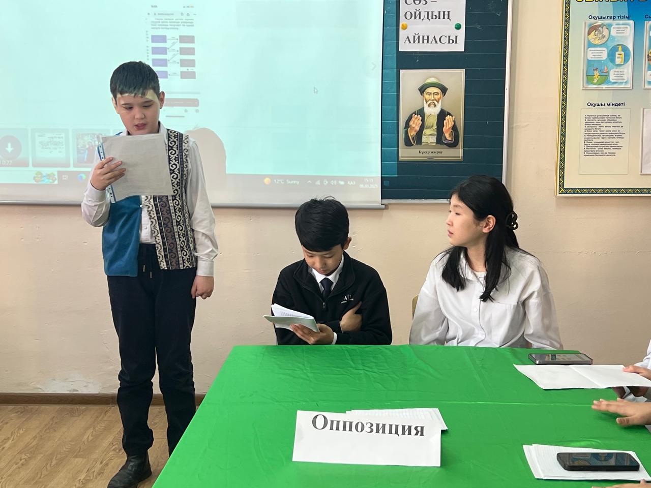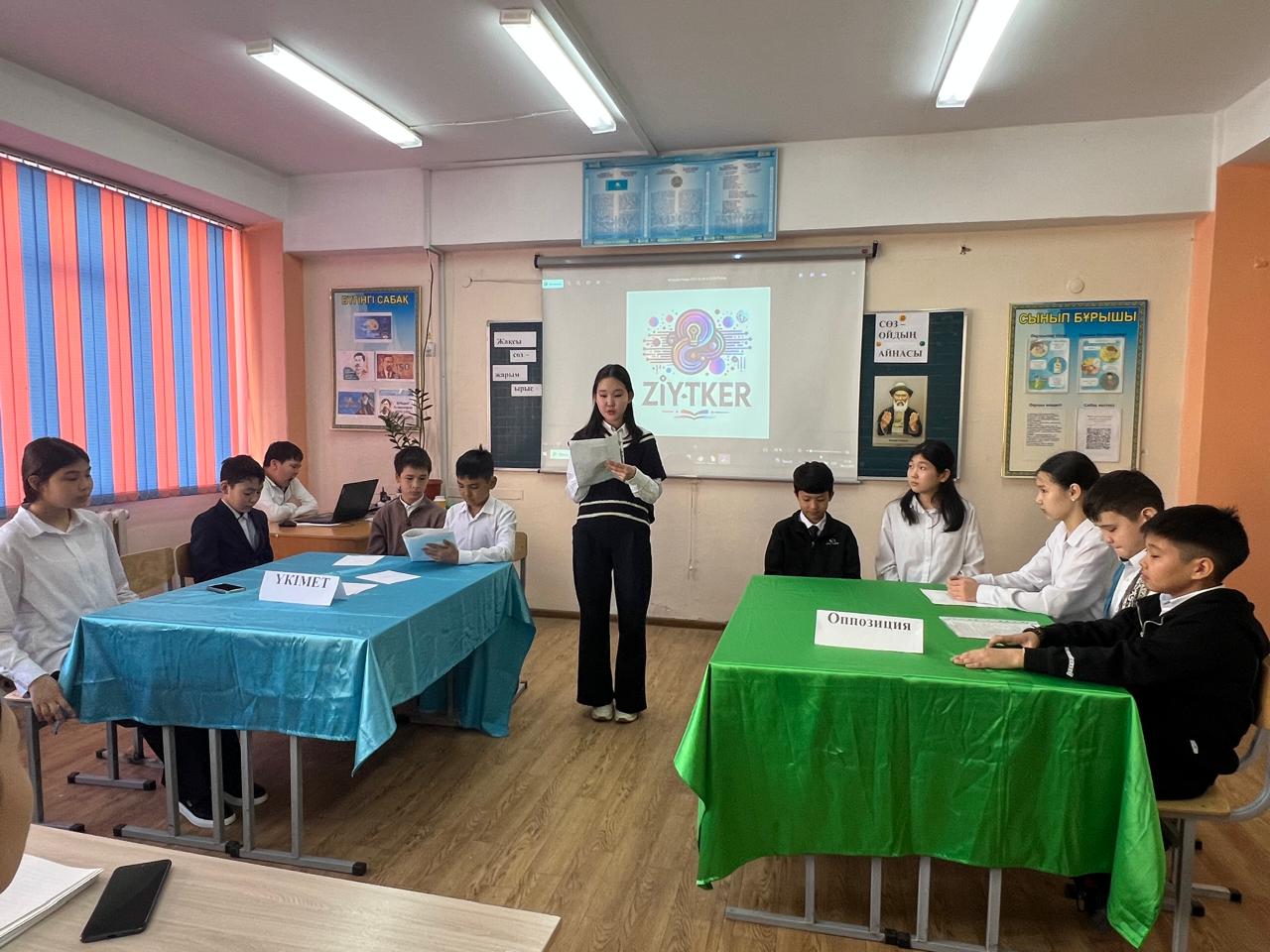 'Зияткер" дебат клубымен 7 сынып оқушылары арасында 'Мектеп жасындағы оқушылардың сөйлеу әдебі" тақырыбында дебат ұйымдастырылды.