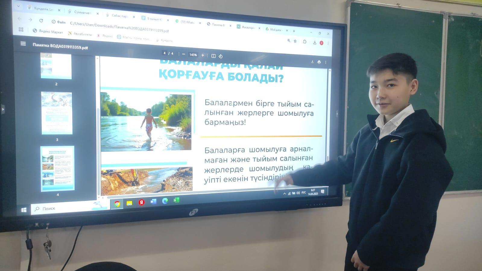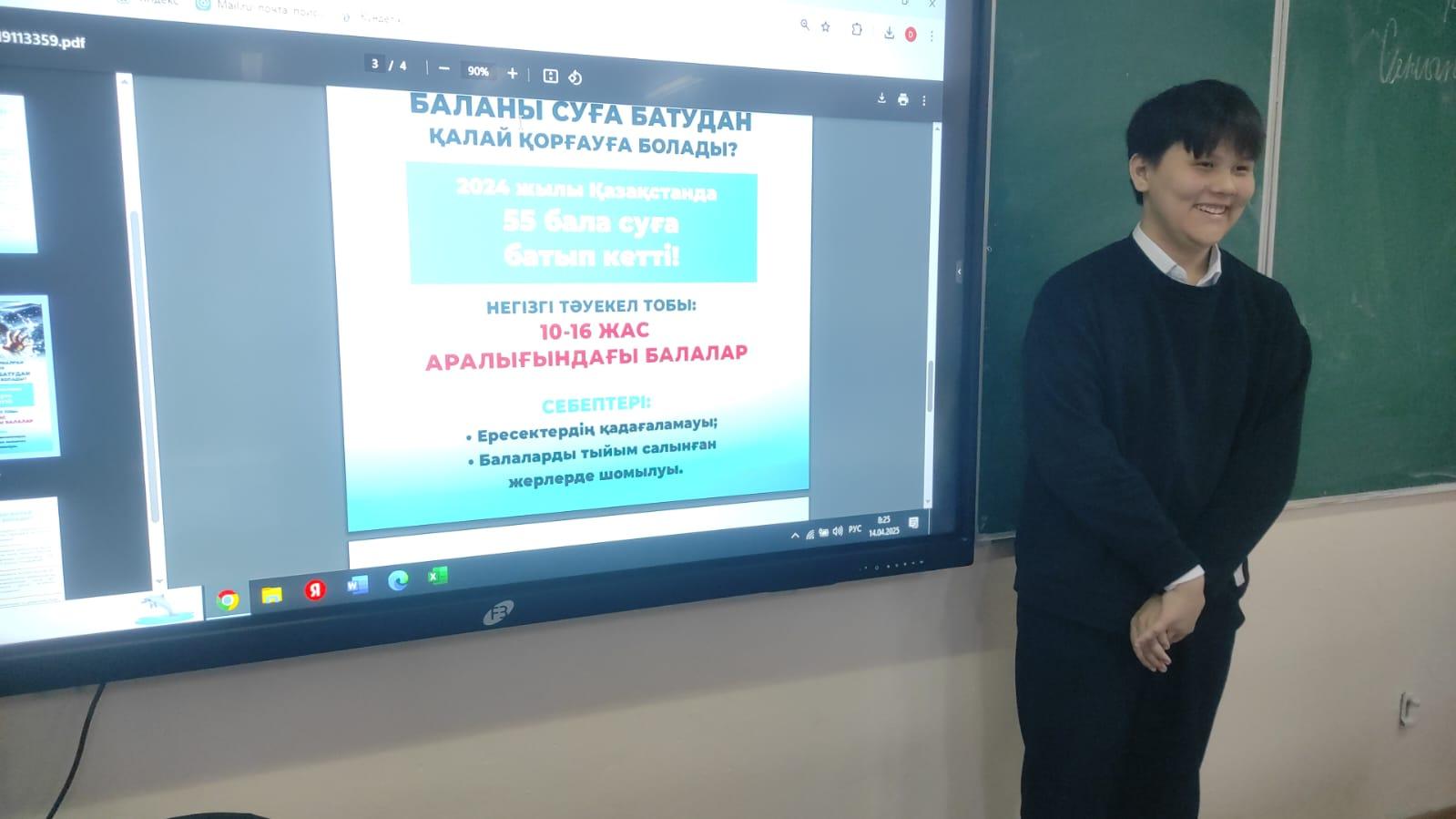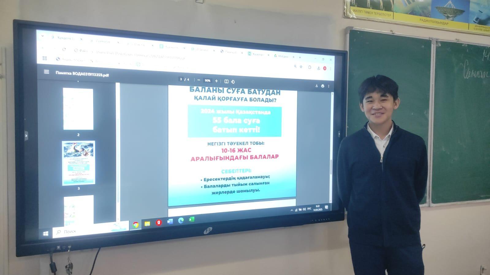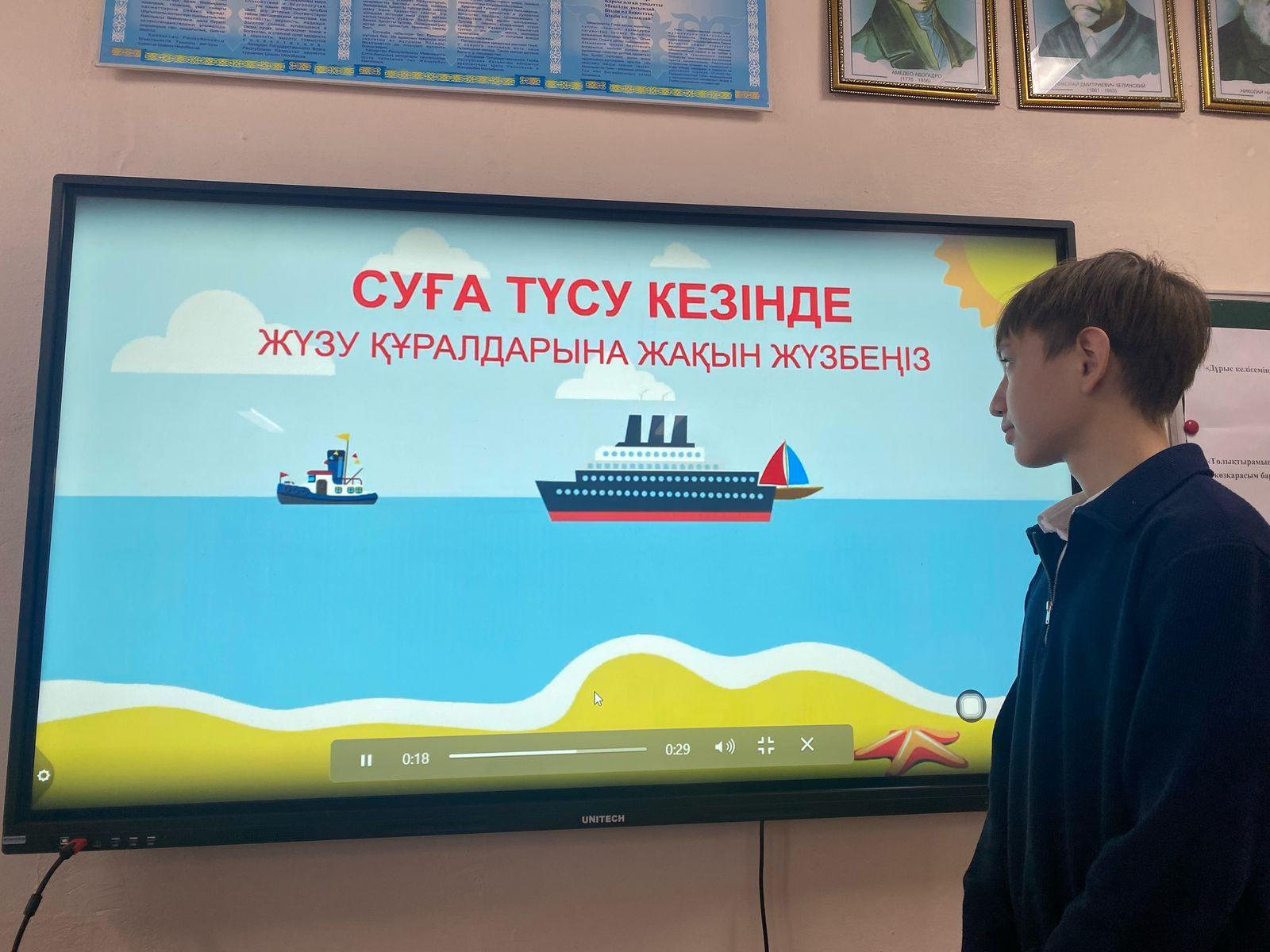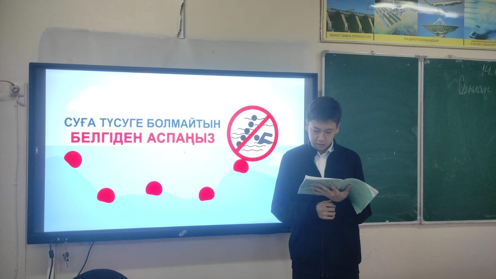 Әр дүйсенбі күні мектептің сынып сағаттары Қазақстан Республикасының әнұранын айтудан басталады. Сынып сағатында 'Суға батудан қалай қорғануға болады?", 'Терезеден құламау", 'Үнемді пайдалану", 'Жол жүру ережесі", 'Жер сілкінісі" т.б. тақырыптарда қауіпсіздік сабақтары өткізіліп тұрады.