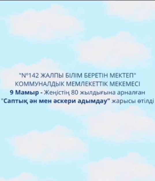 Бүгінгі 9 Мамыр – Жеңіс күніне арналған “№142 жалпы білім беретін мектеп” коммуналдық мемлекеттік мекемесінде 6-7 сынып оқушылары арасында “Саптық ән мен әскери адымдау” байқауы директордың оқу ісі жөніндегі орынбасары Танаева Д.О. ұйымдастыруымен, АӘжТД пәні мұғалімі Серикбаев Т.Д. жүргізуімен өтті.