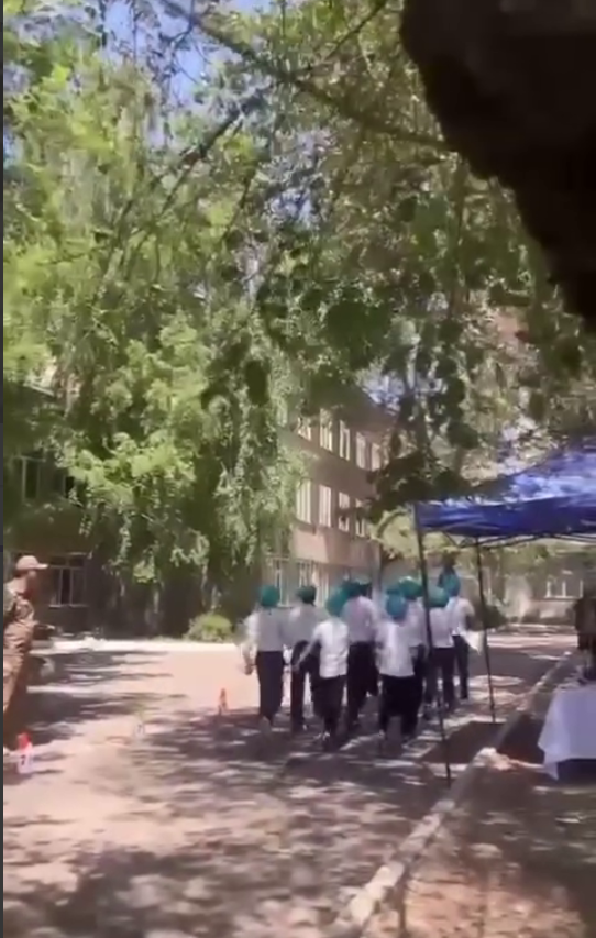 Қатысушыларымыз саппен жүру мен саптық ән айту бойынша сынға түсті. Әр топ тік саппен марш жасап өтеді.