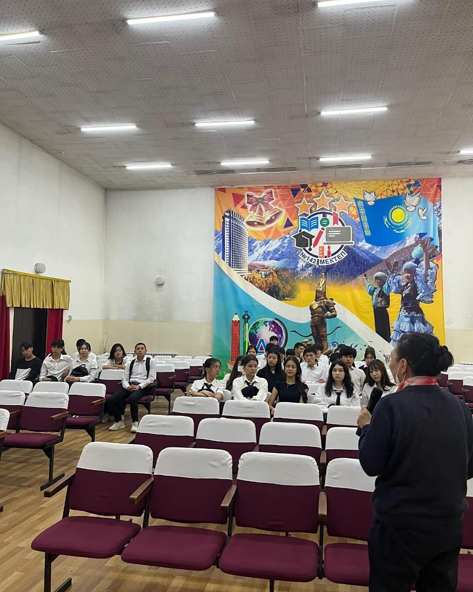 В 2024–2025 учебном году, согласно утвержденному графику, специалист Центра трудовой мобильности города Алматы Еркеш Садыковна провела профориентационную работу во всех школах.