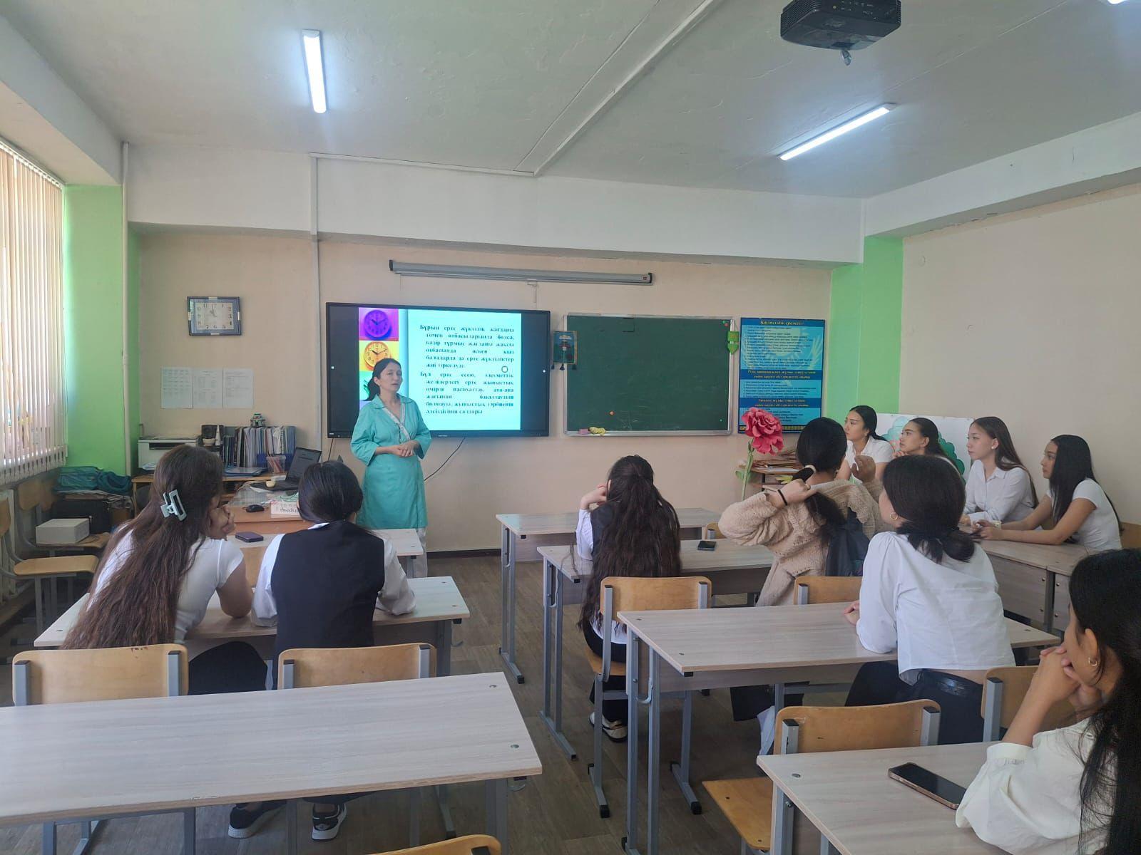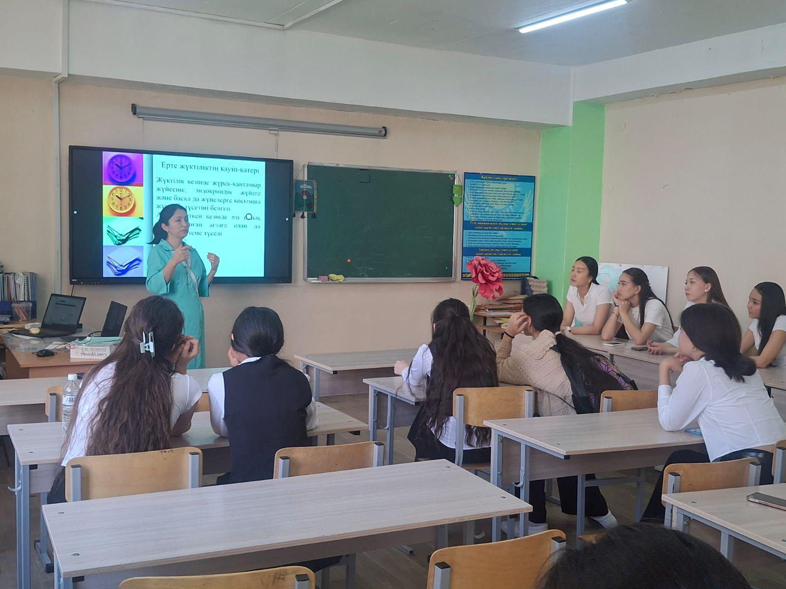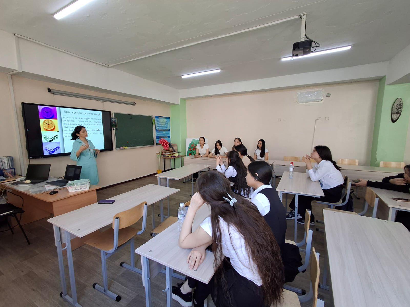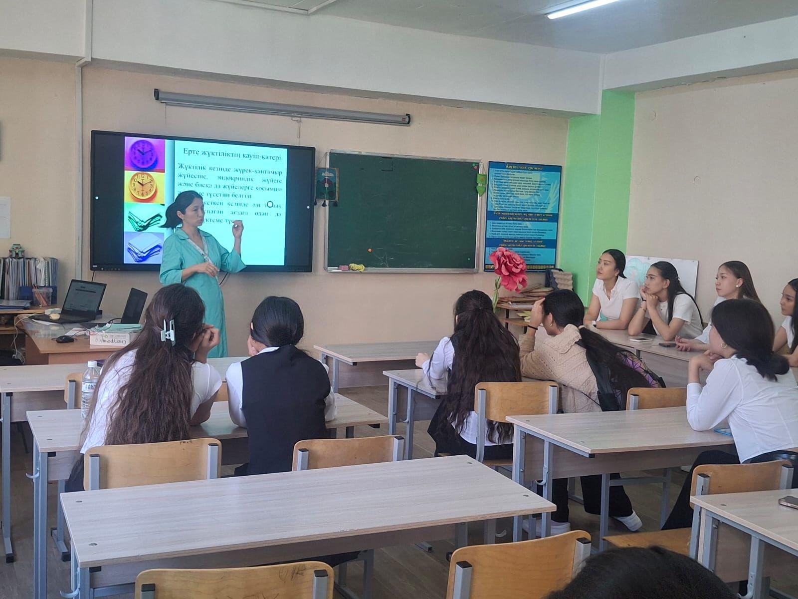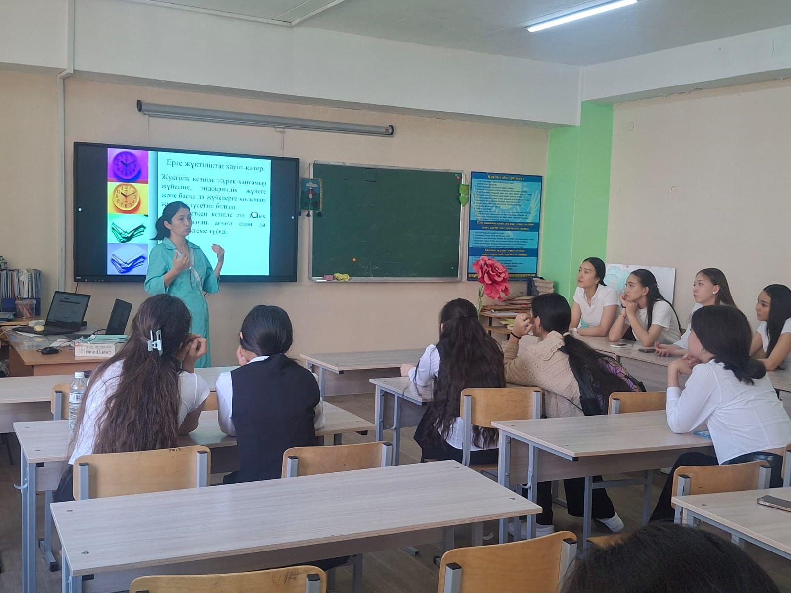 Кездесу барысында оқушыларға ерте жүктіліктің салдары, оның физикалық және психологиялық әсері, сонымен қатар жауапты мінез-құлық пен өзін-өзі қорғау дағдылары жайлы мағлұмат берілді.