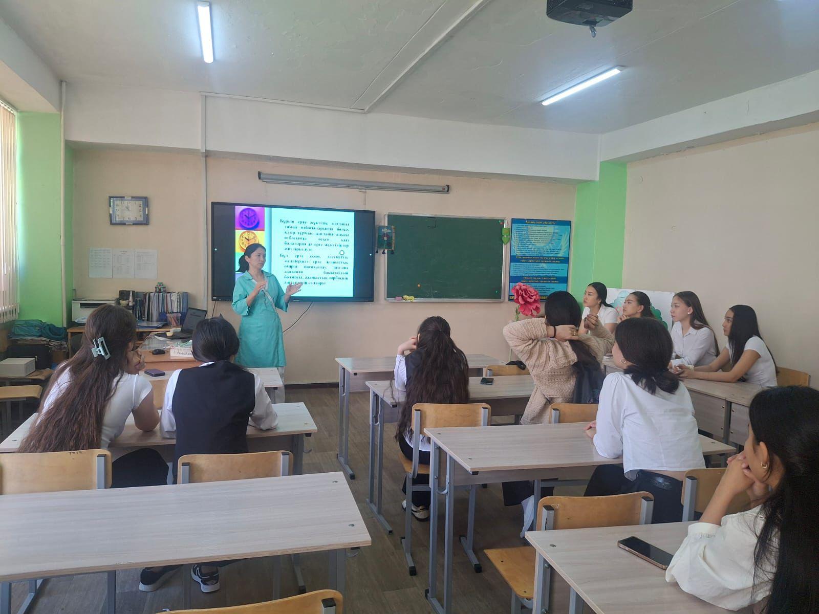 Занятие провели школьный педагог-психолог П.О. Бигелова и медицинская сестра Г.Рузиева.