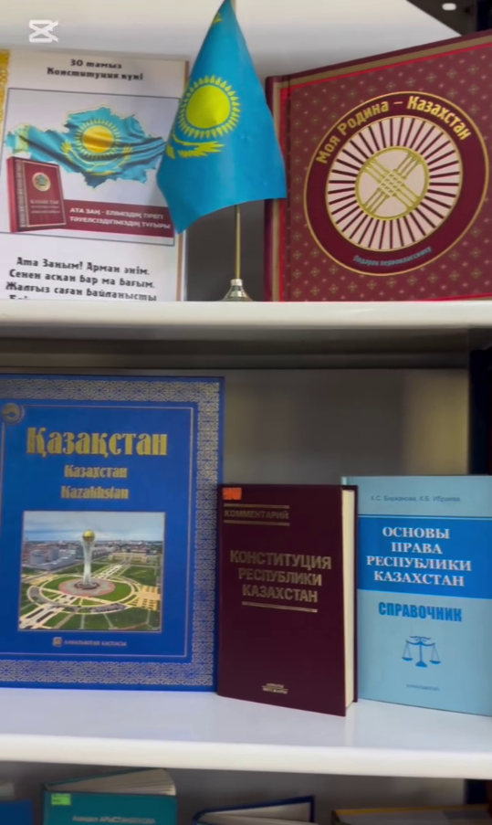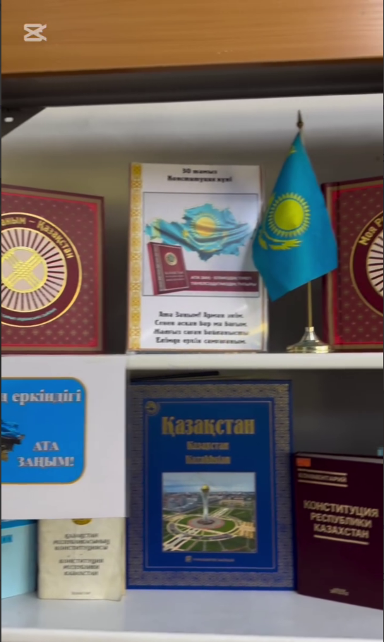 Кітап көрмесі ұйымдастырылды «Адал азамат» бірыңғай тәрбие бағдарламасы аясында Қазақстан Республикасы Конституциясының 30 жылдығына орай. Организована книжная выставка В рамках единой программы воспитания «Адал азамат» К 30-летию Конституции