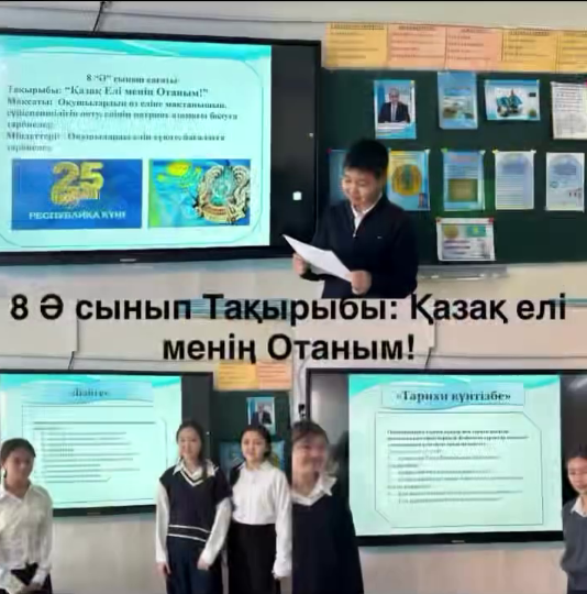 20 қазан 2025 0 1 2 3 4 5 «Республика – менің мақтанышым!». «Республика — моя гордость!». 2025 жылдың 20 қазанында №142 жалпы білім беретін мектепте «Республика – менің мақтанышым!» тақырыбында сынып сағаты өткізілді. Іс-шараның мақсаты – оқушылардың отансүйгіштік сезімін арттыру, Қазақстан Республикасының жетістіктері туралы мағлұмат беру, елге деген мақтаныш сезімін қалыптастыру.20 октября 2025 года в КГУ ОШ №142 был проведён классный час на тему «Республика — моя гордость!». Цель мероприятия — развитие патриотических чувств у учащихся, формирование гордости за достижения Республики Казахстан и уважения к своей стране. Осы беттің QR-коды:QR-код этой страницы: