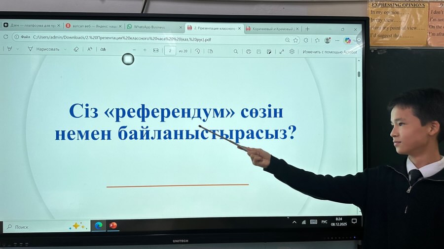 №142 мектепте «Республикалық референдум туралы не білуіңіз керек?» тақырыбында біріңғай тәрбие сағаты өткізілді.
