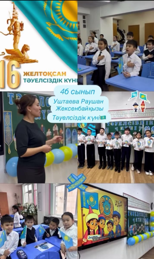 20 желтоқсан 2025 0 1 2 3 4 5 «Тәуелсіздік тұғыры» бірыңғай сынып сағаты. Единый классный час «Опора независимости. 15.12.2025 жылы №142 жалпы білім беретін мектепте «Адал азамат – біртұтас бағдарлама» аясында бастауыш сынып оқушыларына арналған «Тәуелсіздік тұғыры» тақырыбында бірыңғай сынып сағаты өткізілді. Сынып сағаты барысында оқушылар Тәуелсіздік ұғымының маңызын түсініп, отансүйгіштікке, елін, жерін қадірлеуге тәрбиеленді. Іс-шара оқушылардың тарихи санасын қалыптастыруға, мемлекетіміздің жетістіктерін бағалауға бағытталды.15.12.2025 года в общеобразовательной школе №142 в рамках программы «Адал азамат – единая программа» был проведён единый классный час для учащихся начальных классов на тему «Опора независимости». В ходе мероприятия учащиеся ознакомились с понятием независимости, формировали патриотические чувства, уважение к Родине и её достижениям. Классный час способствовал развитию гражданского сознания и исторической памяти. Осы беттің QR-коды:QR-код этой страницы: