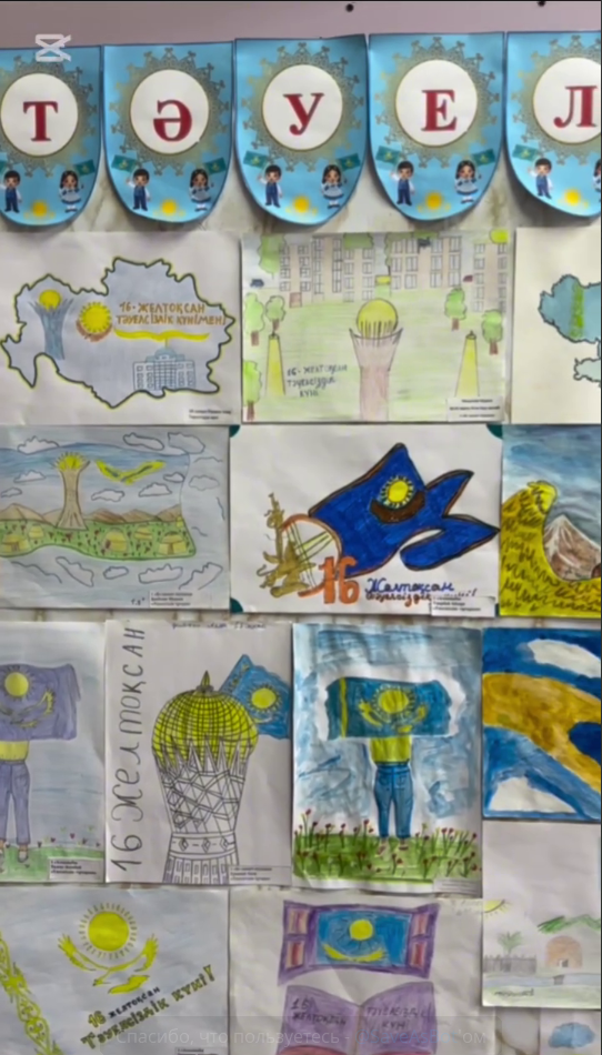 19 желтоқсан 2025 0 1 2 3 4 5 «Тәуелсіздік – тұғырым» сурет көрмесі. «Независимость — мой оплот» выставка рисунков. 2025 жылғы 10 желтоқсанда №142 жалпы білім беретін мектепте тәуелсіздік күніне орай 1-сынып оқушылары арасында “Тәуелсіздік – тұғырым” атты сурет көрмесі ұйымдастырылды. Кішкентай балдырғандар өздерінің патриоттық сезімдерін түрлі суреттер арқылы көрсетті. Тәуелсіздік тұғырлы болғай! 10 декабря 2025 года в школе №142 была организована выставка рисунков среди учеников 1-х классов на тему “Независимость — мой оплот” в честь Дня Независимости. Маленькие ребята выразили свои патриотические чувства через свои рисунки. Пусть Независимость будет прочной! Осы беттің QR-коды:QR-код этой страницы: