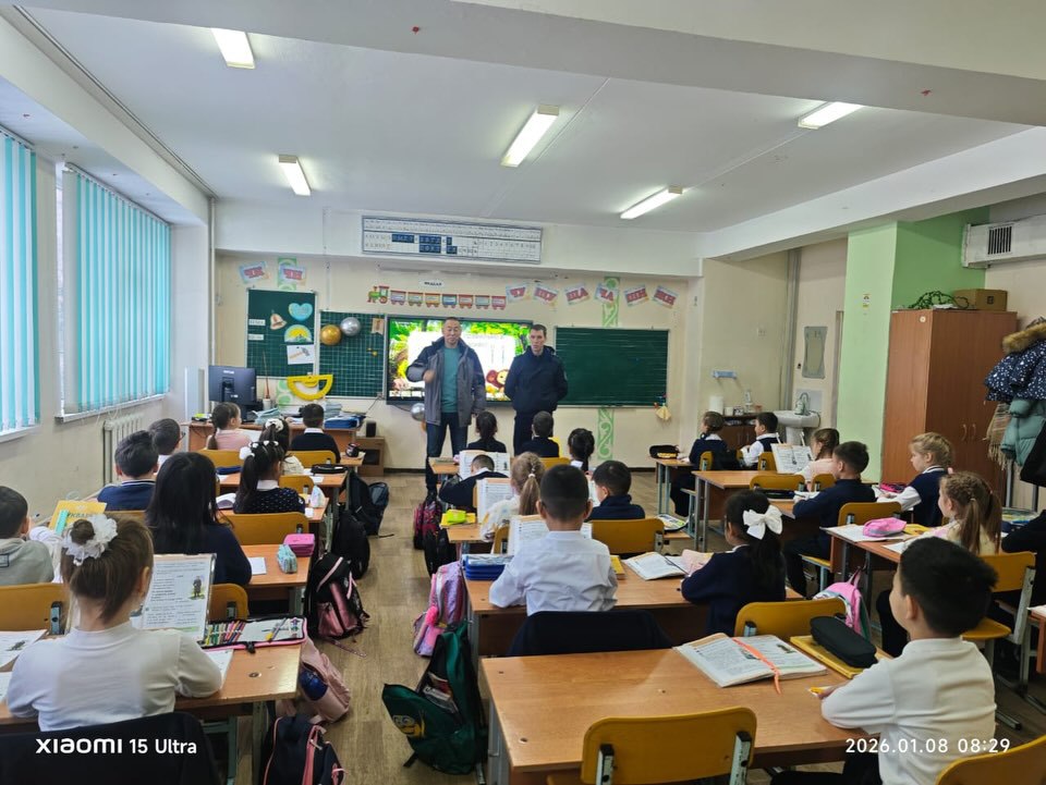 8 января 2026 года в КГУ ОШ №142 в целях организации профилактической работы в школе сотрудниками УИП ОЮП ООБ УП Турксибского района были проведены разъяснительные беседы с учащимися 2–6 классов.