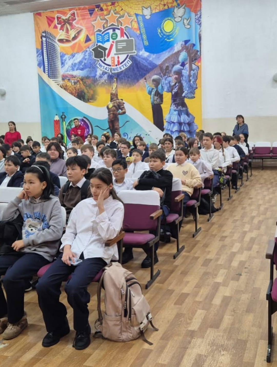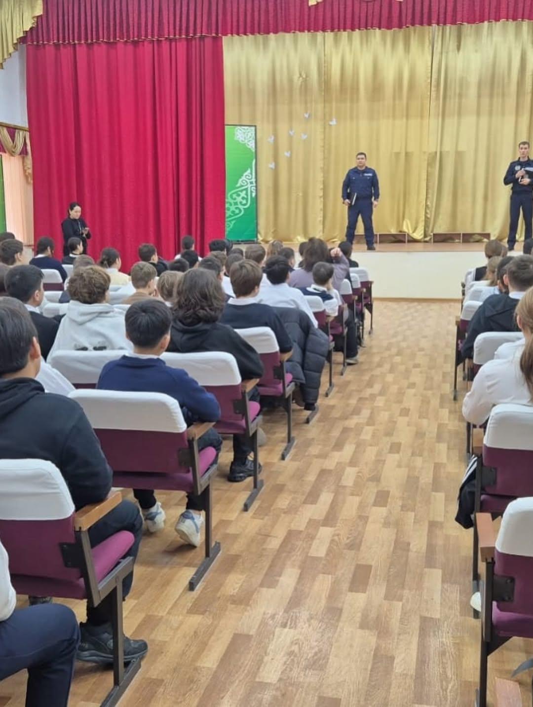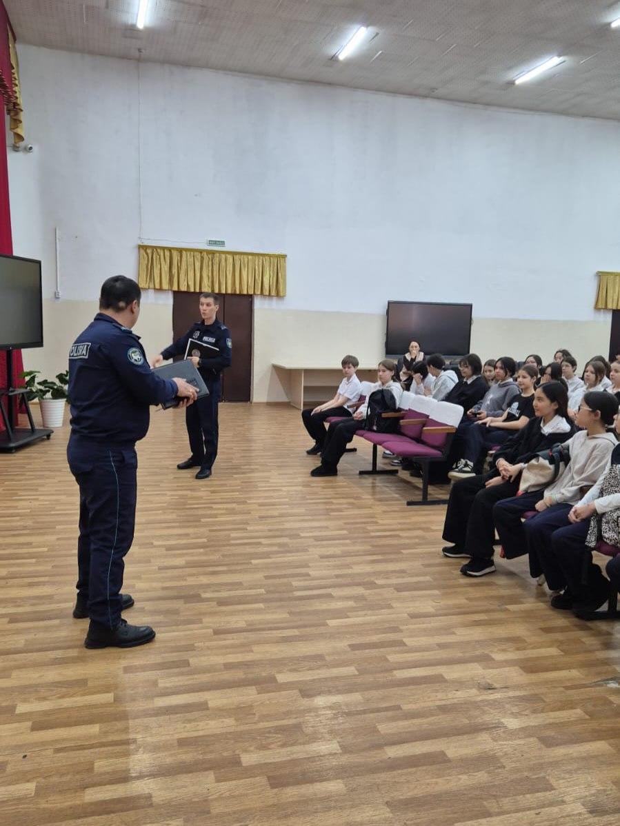 Среди учащихся 6–7 классов была проведена профилактическая лекция. Лекцию провели Полюдин П.С и участковый инспектор ОЮП ООБ УП Турксибского района, старший лейтенант полиции Рысалдиев Р.А.