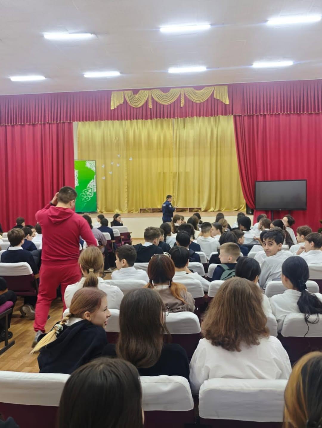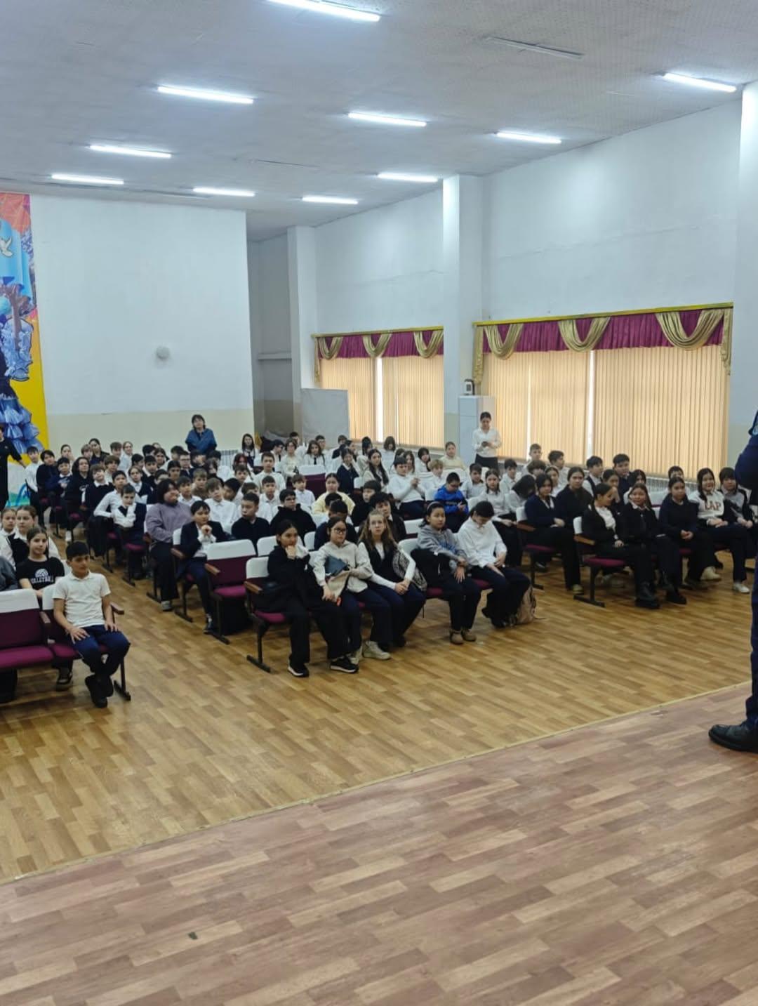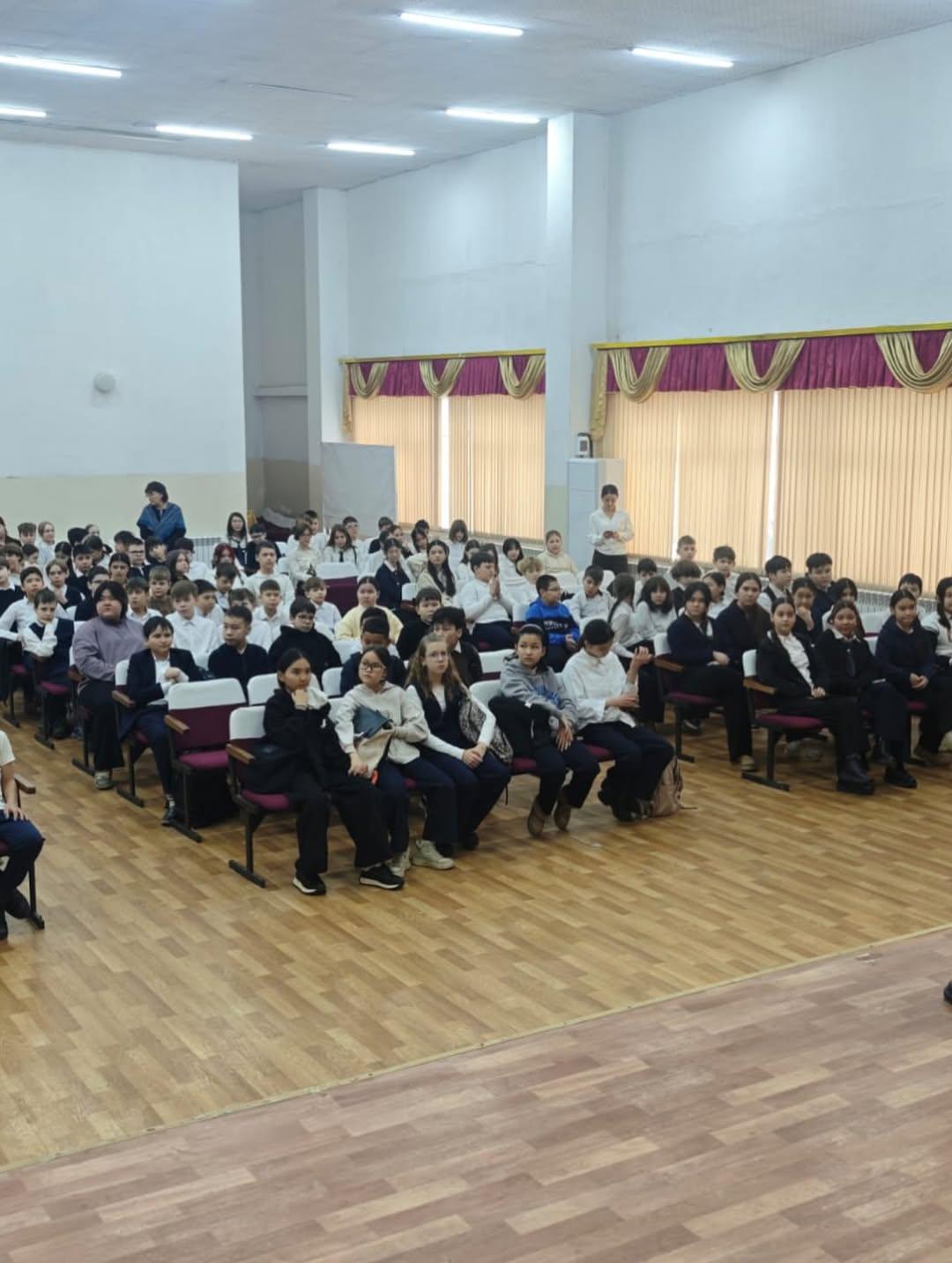 Среди учащихся 6–7 классов была проведена профилактическая лекция. Лекцию провели Полюдин П.С и участковый инспектор ОЮП ООБ УП Турксибского района, старший лейтенант полиции Рысалдиев Р.А.
