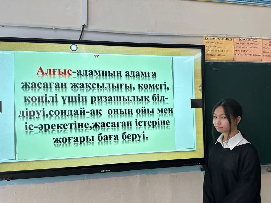 Мектебімізде 1–11 сыныптар арасында «Адал азамат» тақырыбында сынып сағаты өткізілді. Сынып сағатының мақсаты – оқушылардың бойында адалдық, әділдік, жауапкершілік сияқты адамгершілік құндылықтарды қалыптастыру, құқықтық сауаттылығын арттыру және қоғамға пайдалы, саналы тұлға тәрбиелеу.