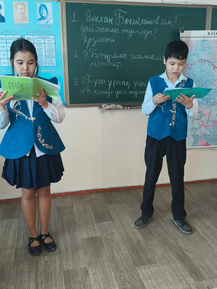 В 5 «Ә» классе был проведён классный час на тему «Я знаю Алихан Букейханов». Цель занятия – познакомить учащихся с жизнью и деятельностью выдающегося общественного и политического деятеля, а также показать его вклад в развитие страны.