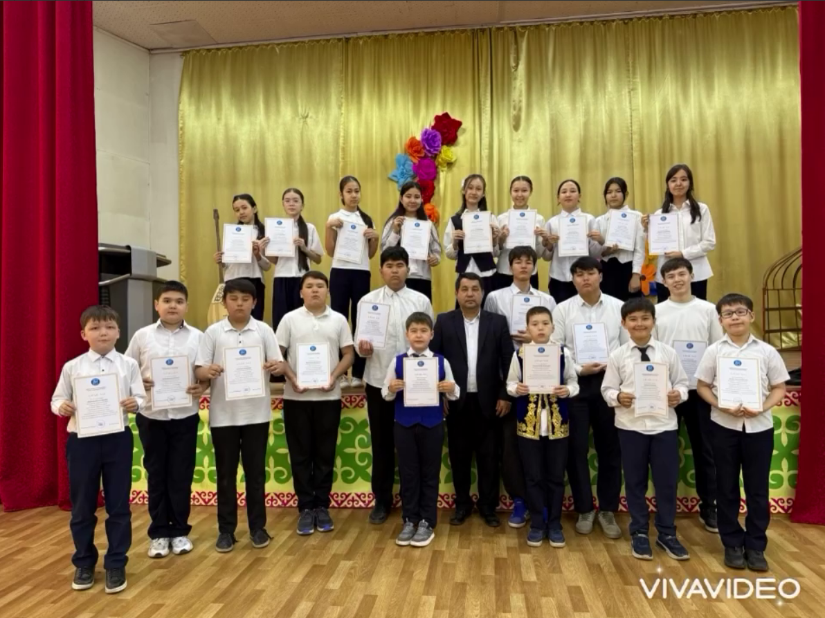 «Домбыра үні» ауқымды шарасына қатысқан оқушыларды марапаттау / Награждение учащихся за участие в масштабном мероприятии «Звук домбры»