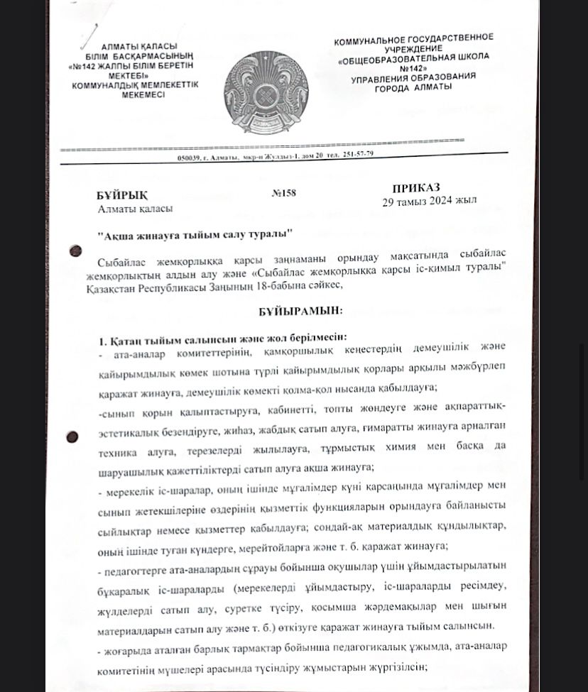 29 тамыз 2024 0 1 2 3 4 5 Приказ о запрете сбора денежных средств Осы беттің QR-коды:QR-код этой страницы: