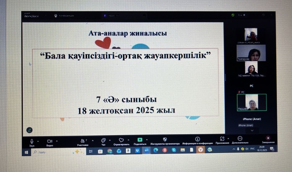 №142 жалпы білім беретін мектепте «Баланың қауіпсіздігі – ортақ жауапкершілік» тақырыбында ата-аналар жиналысы өтті.