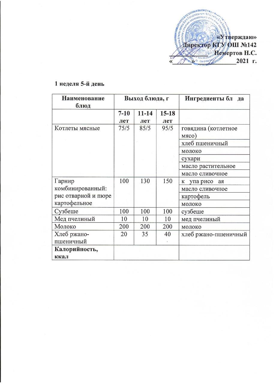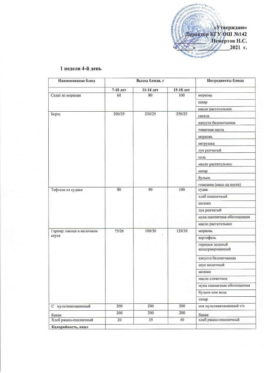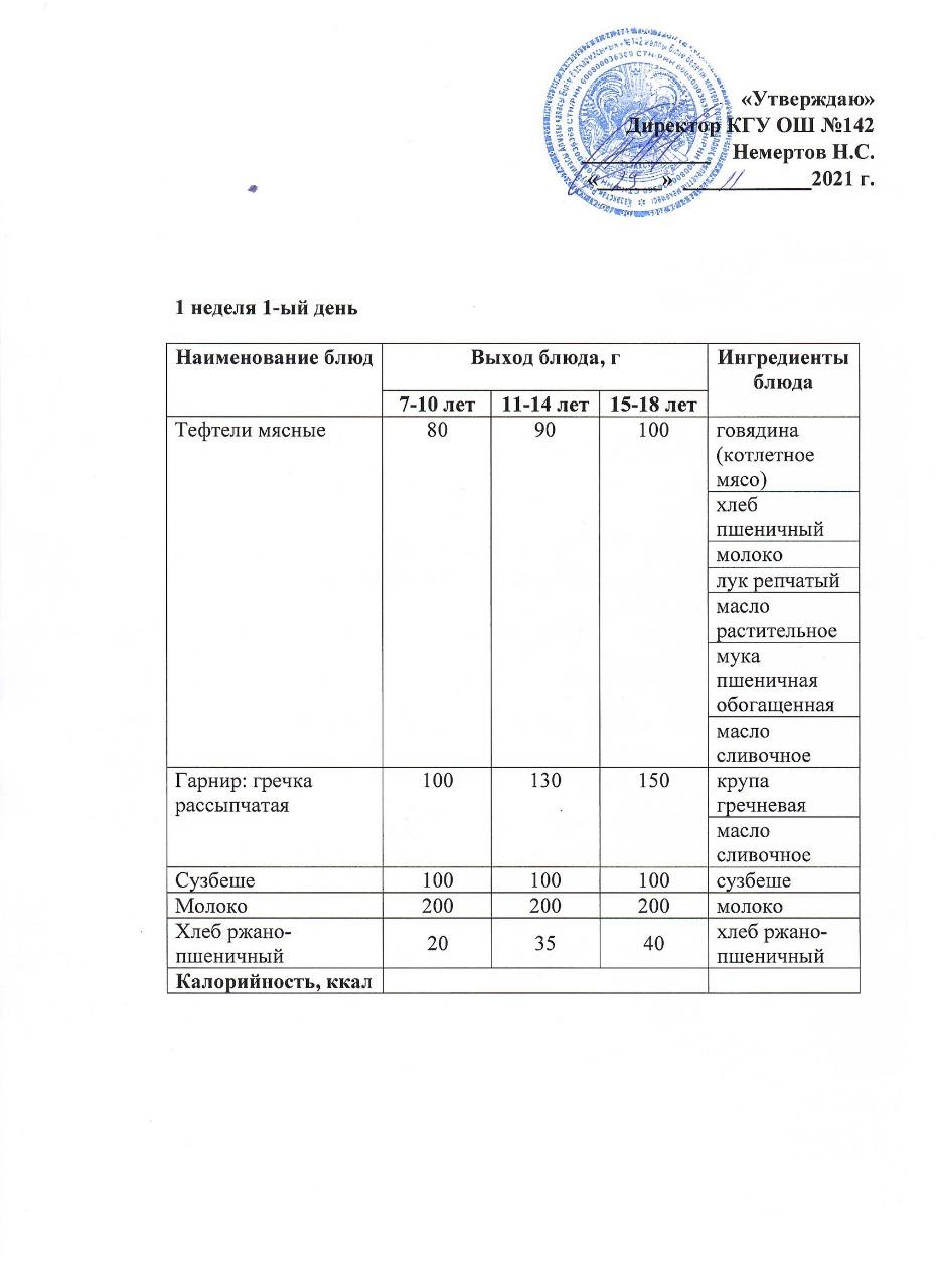 Меню Зима 1-неделя 2021 г.