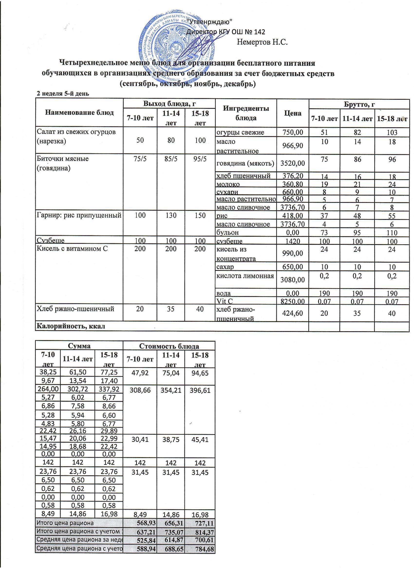 Меню на пятницу. 2 неделя