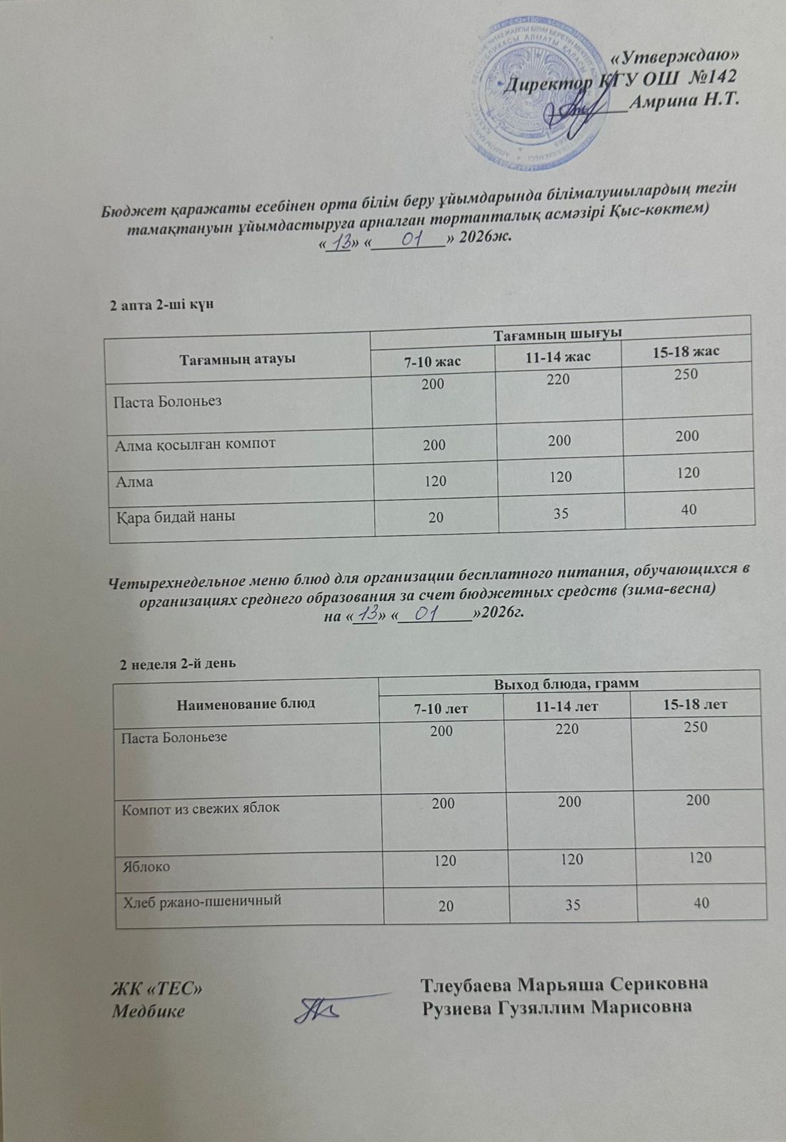 13 қаңтар 2026 0 1 2 3 4 5 Тегін тамақтануға арналған ас мәзірі.Меню блюд для организации бесплатного питания Осы беттің QR-коды:QR-код этой страницы: