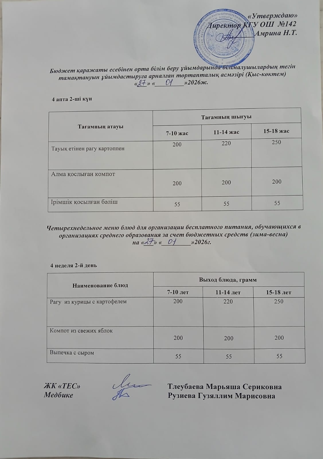 27 қаңтар 2026 0 1 2 3 4 5 Тегін тамақтануға арналған ас мәзірі.Меню блюд для организации бесплатного питания Осы беттің QR-коды:QR-код этой страницы: