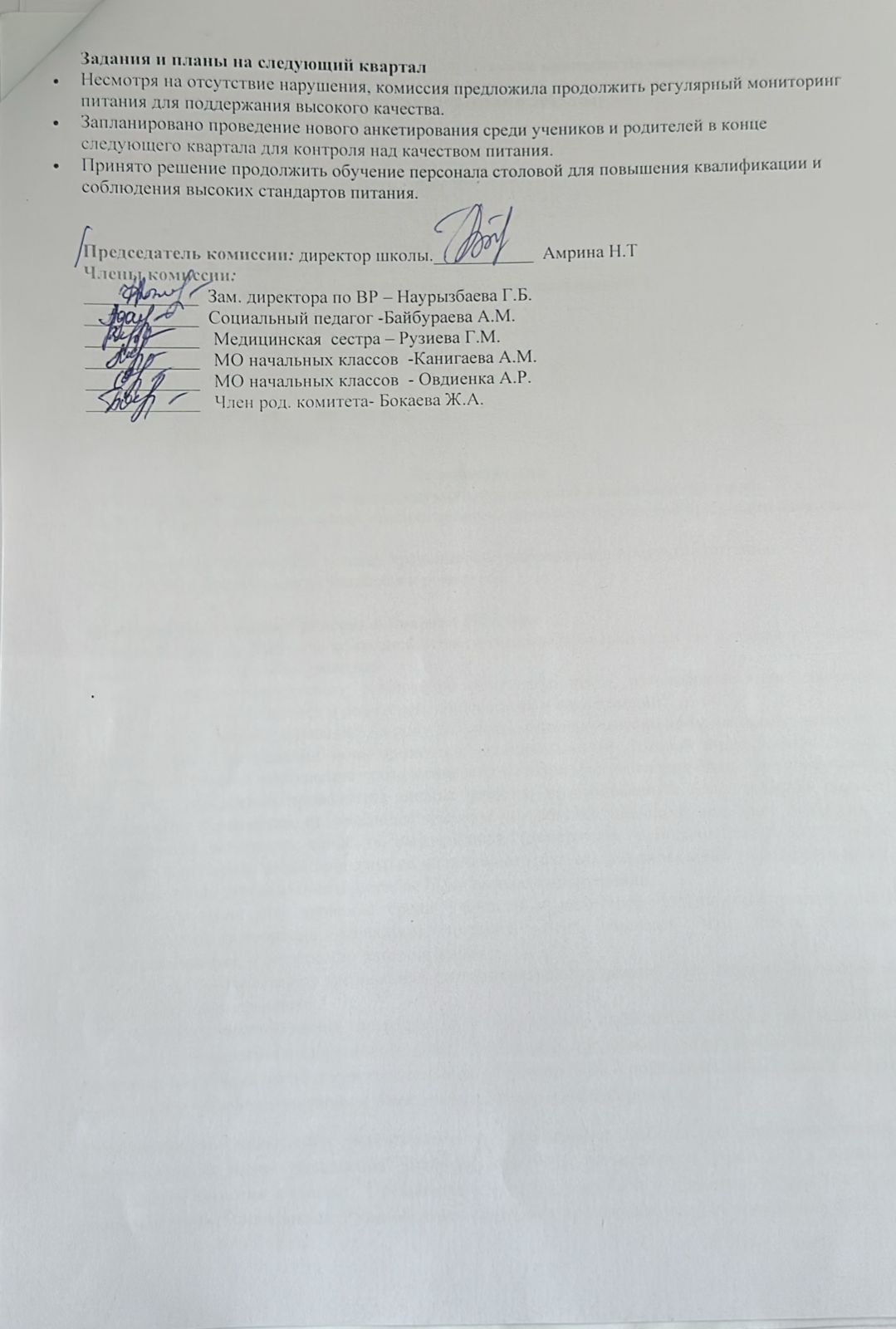 2025жылы тамақтану сапасына монитринг жүргізу жөніндегі комиссиясының қызметі туралы тоқсан сайынғы хаттама/Ежеквартальные протокола о деятельности комиссии по мониторингу за качеством питания в 2025году