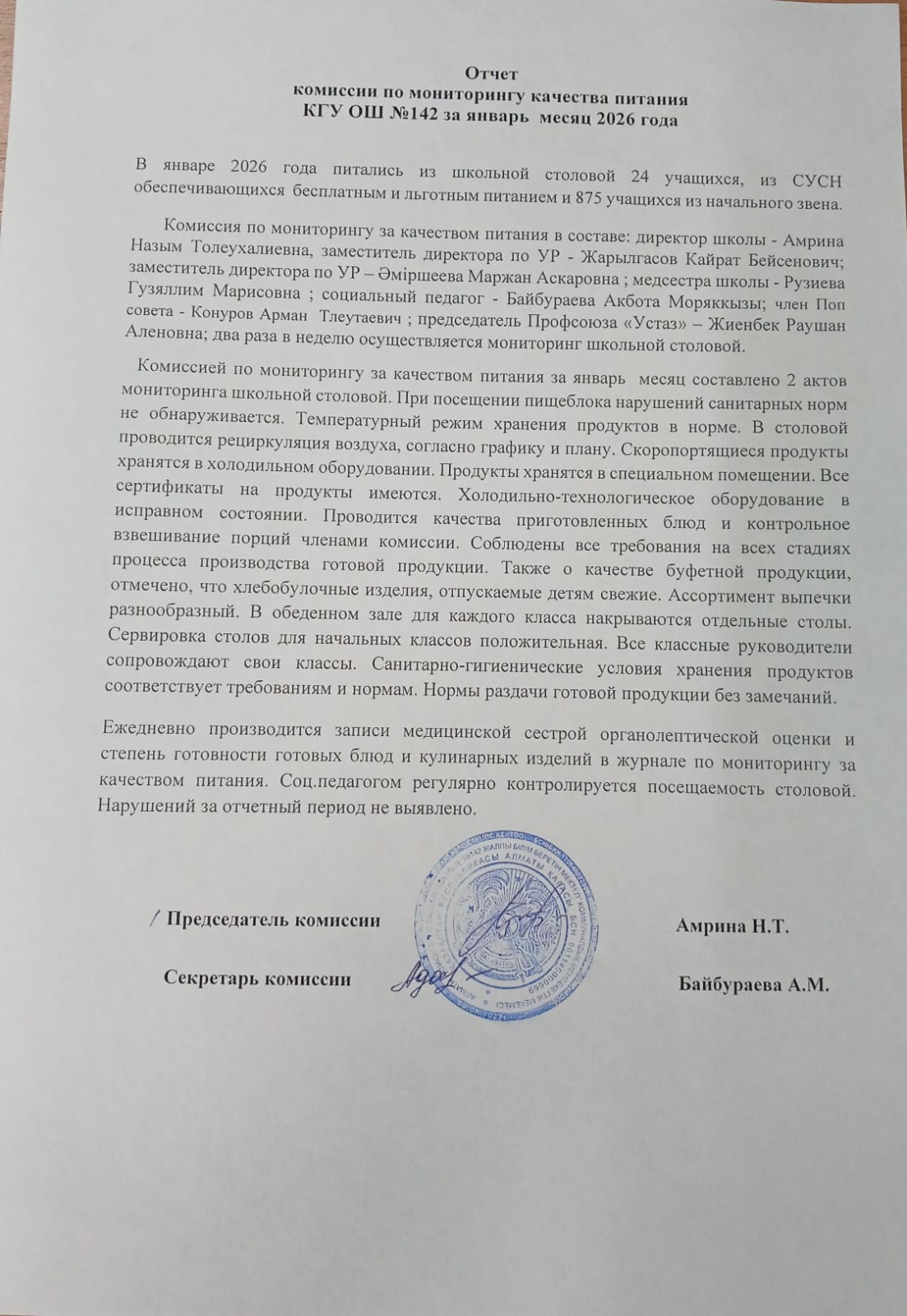 30 қаңтар 2026 0 1 2 3 4 5 2026 жылғы қаңтар айындағы мектеп асханасының жұмысы туралы есеп. Отчёт о работе школьной столовой за январь 2026 года. Осы беттің QR-коды:QR-код этой страницы: