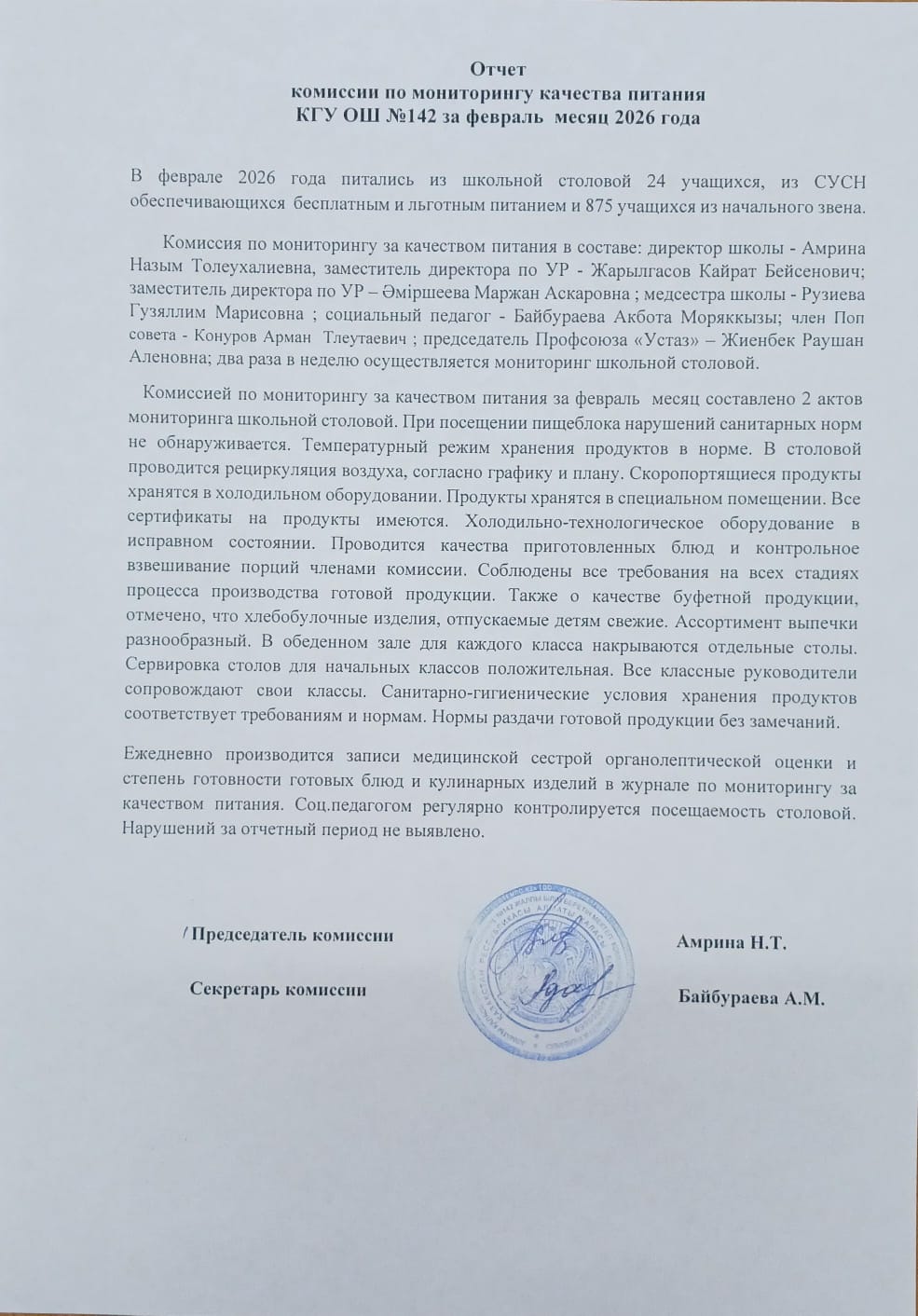 27 ақпан 2026 0 1 2 3 4 5 2026 жылғы ақпан айындағы мектеп асханасының жұмысы туралы есеп. Отчёт о работе школьной столовой за февраль 2026 года. Осы беттің QR-коды:QR-код этой страницы: